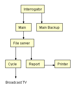 There are four basic program components to the lap counting system: Setup, Main, Report and Cycle . These are maintained on separate computers connected together via a computer network, using another computer called a file server to store all the information.